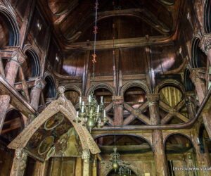 El interior de las Stavkirke es un discreto museo de arte sacro, para el aficionado al mismo, y una incesante fuente de curiosidad arquitectónica para el aficionado a la construcción.
