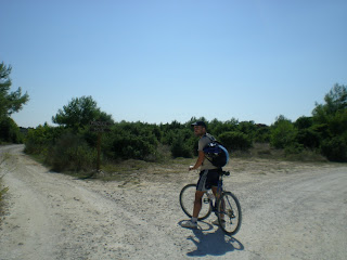 El calor apretaba y los kilómetros iban haciendo mella en nuestras piernas. Aún quedaba la parte más dura de nuestro camino hacia Premantura –el parque natural que nos fijamos como objetivo al principio del día- el tramo entre Bagnole y Premantura, que incluye una pista de tierra y piedra de la que nuestros traseros recordarían por varios días. Y me pregunto, ¿cómo aguantábamos tanto en la bici cuando éramos pequeños?