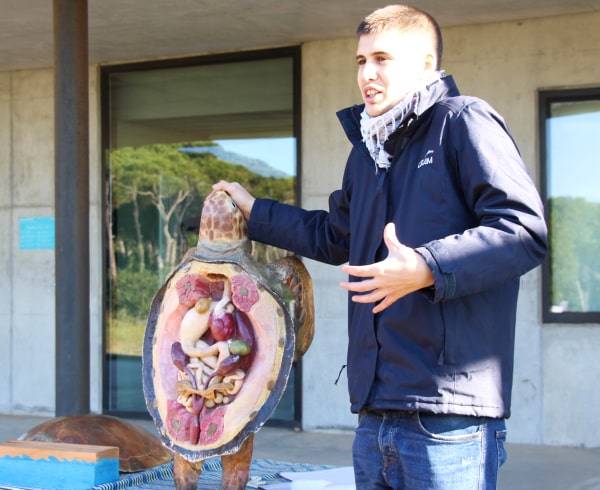 La actividad tiene una duración de hora y media y a través de ella aprendemos de manera sencilla y didáctica todo el proceso desde que alguien encuentra una tortuga herida en las costas hasta que se lleva al centro de recuperación, los veterinarios la curan y a ser posible la devuelven a su habitat natural en el mar.