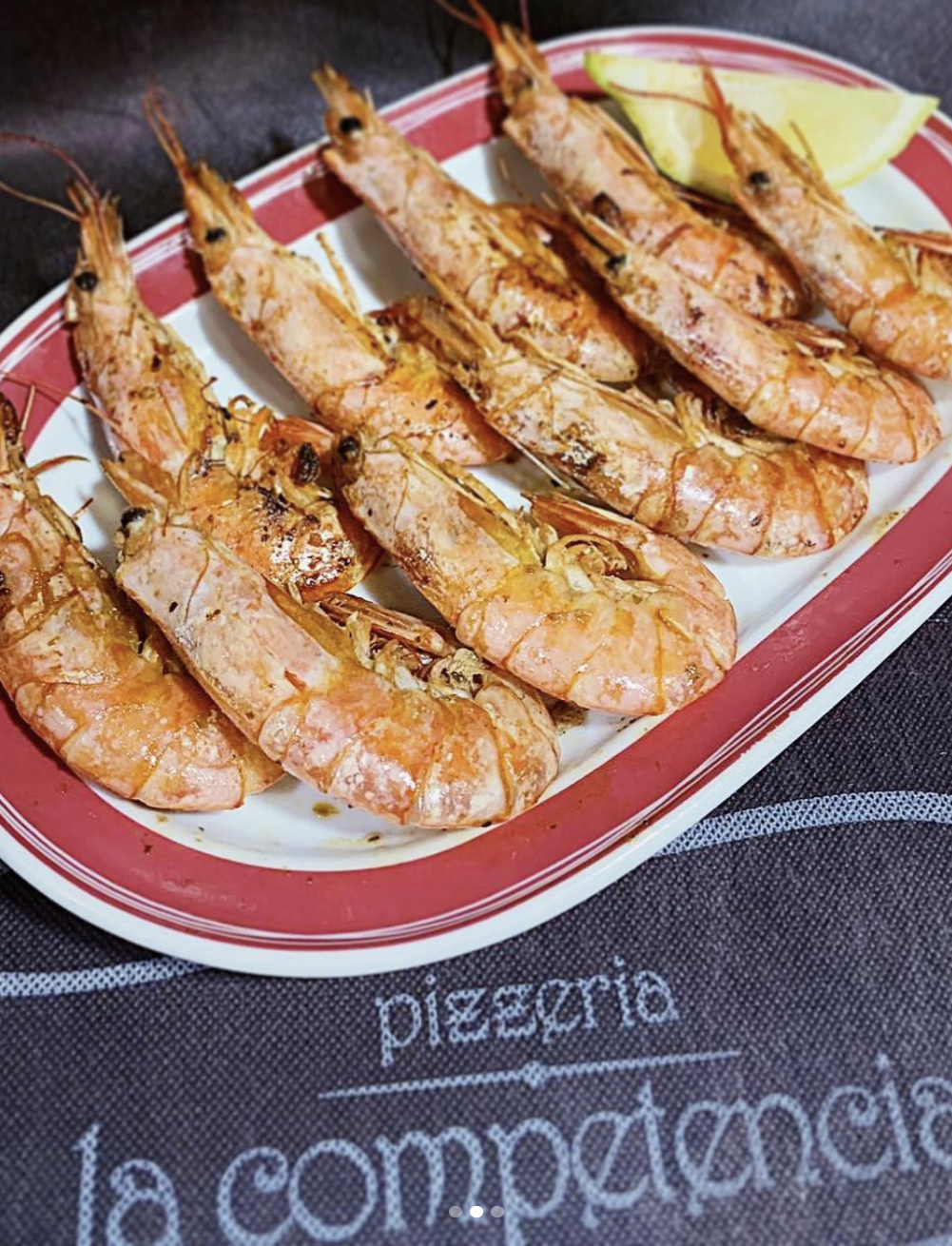 En este ambiente de feria, comida y bebida típicas de Andalucia, no pueden faltar las Tortitas de Camarón, Chipirones Fritos, Pescadito Frito, Gazpacho, Langostino Cocido, Jamón Ibérico, Calamares Fritos, Chopitos, Surtido de la Feria, Camarones, Gambitas, Paleta ibérica, Tataki de atún sobre papas aliñás, Flamenquin con patatas y salsa tártara, montadito/serranito con patatas fritas y ali oli, cazón en adobo con crema de aceitunas, rabo de toro al vino de ronda, Tomatitos con melón y jamón, Jamón 5 jotas y pan tumaca, Bloody Mary con berberechos, Croquetas de calamar o Langostinos crujientes.