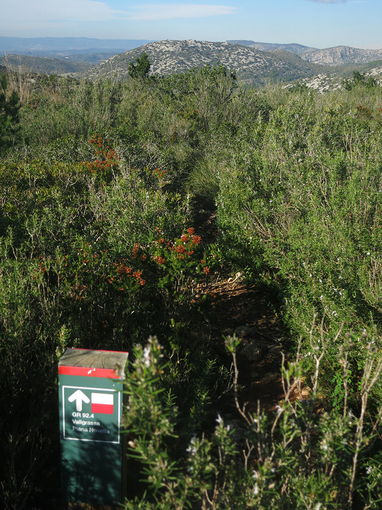 Una vez hemos llegado al Pla d’en Querol (487 metros) tenemos varias opciones, por un lado podemos subir a La Morella, el pico más alto del parque natural del Garraf con sus 593 metros, junto a el se levanta el centro astronómico del Garraf y por el otro lado el GR-92 desciende en dirección a Vallgrassa.