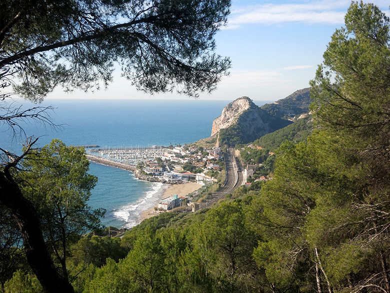 La jornada la iniciamos en la estación de Renfe de Garraf. Salimos por la cara norte de la estación en busca de la carretera nacional donde veremos las primeras marcas rojas y blancas del GR-92. Tras realizar una amplia curva veremos que las marcas nos alejan de la carretera a través de un sendero que asciende y paulatinamente empezaremos a tener vistas al mar y al pequeño pueblo de Garraf.