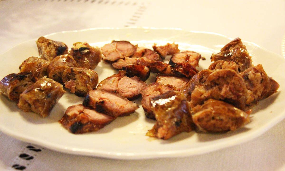 Entre alguno de sus platos, probamos la alheria (embutido compuesto por un variado de carne picada de tocino, ave, pan, aceite, ajo y pimentón), una estupenda ternera mirandesa, un jabalí con grelos y calabaza, arroz con paloma y butelo con casulas (botillo con legumbres).