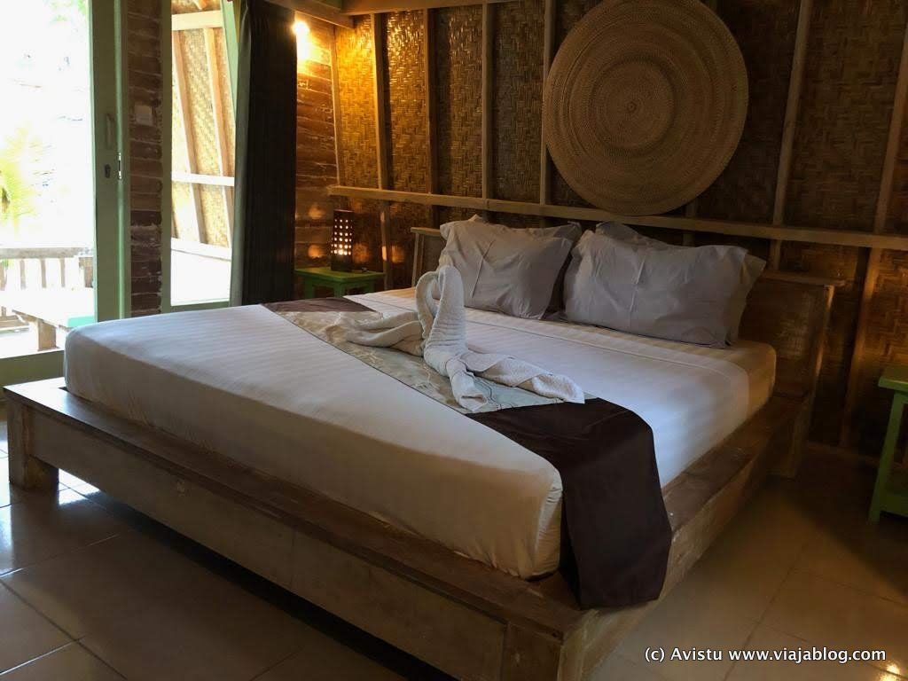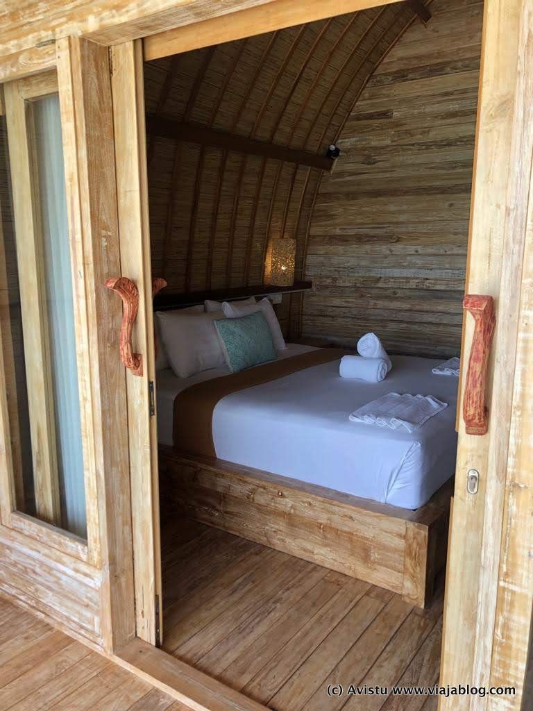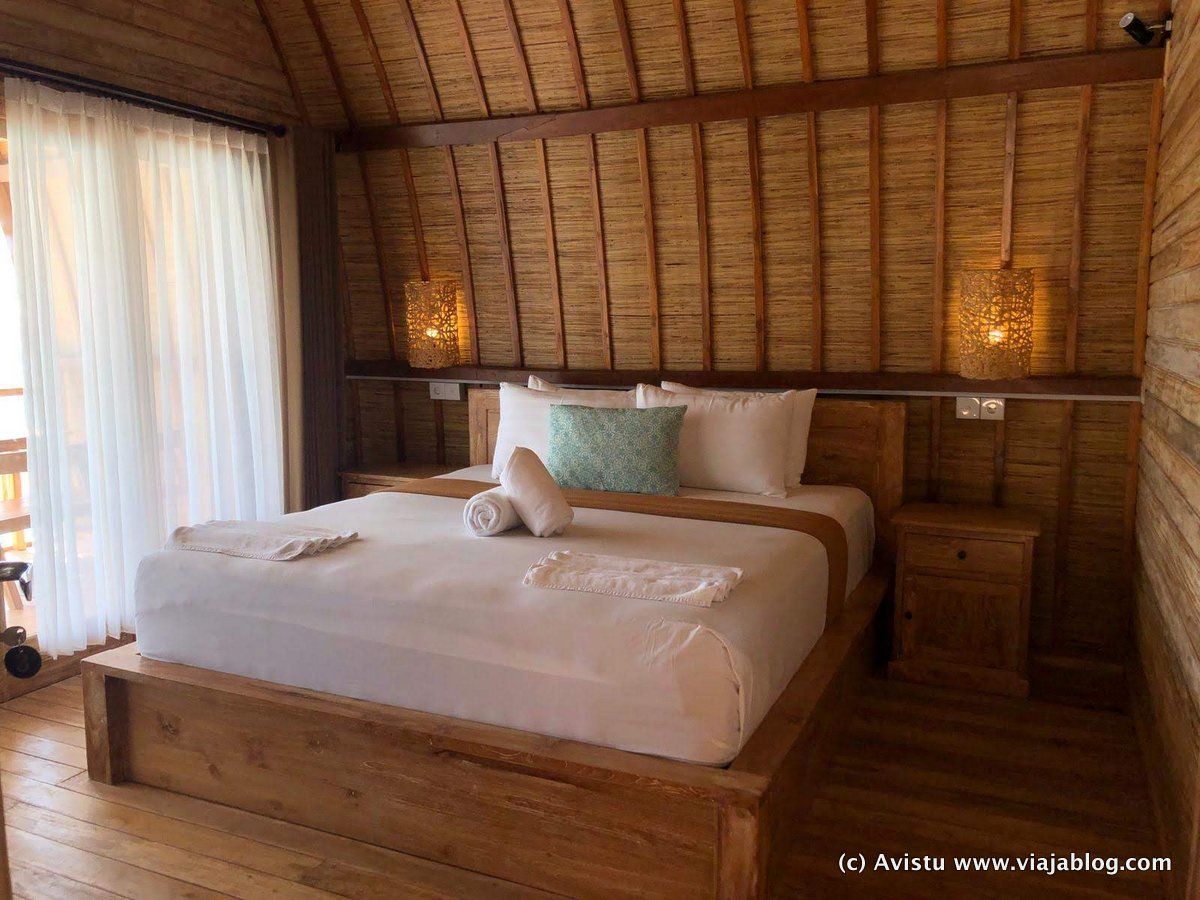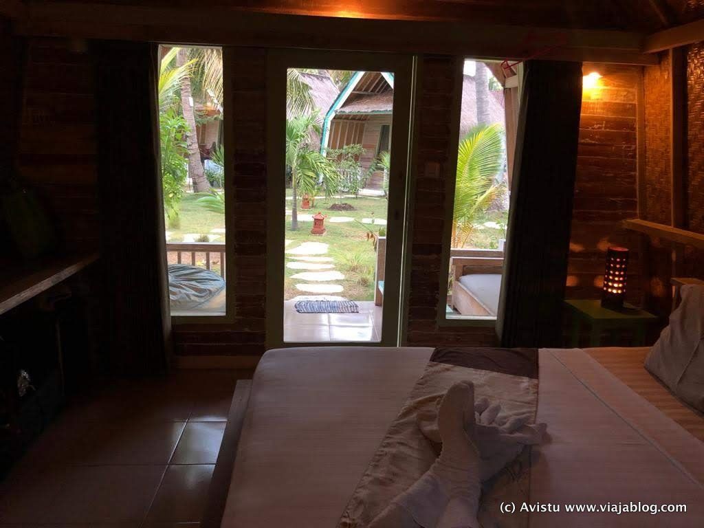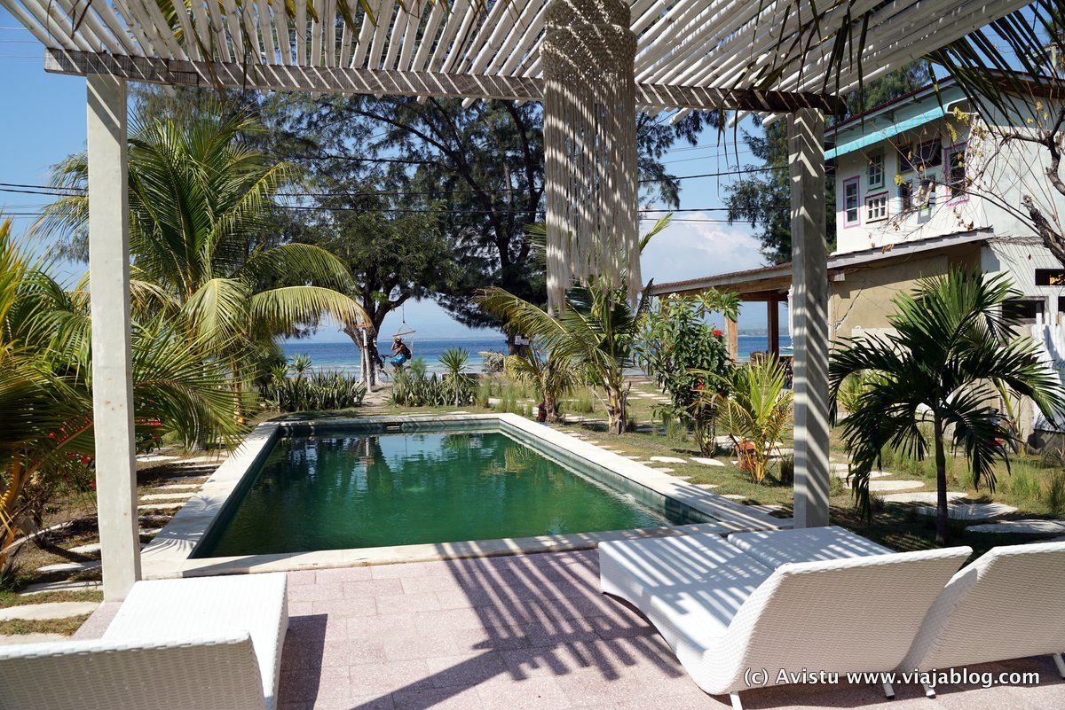 Así es Villa Coco Republic en Gili Air, que dispone además de una villa con piscina privada, un pequeño conjunto de cabañas de estilo tropical, pero con nevera y televisor (que nunca encendí).
