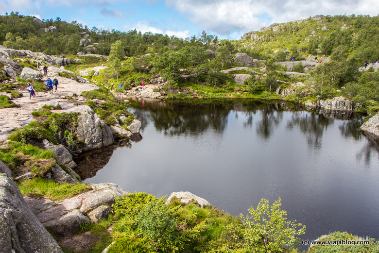 Pequeño lago en los Fiordos de Noruega durante la ascensión al Preikestolen