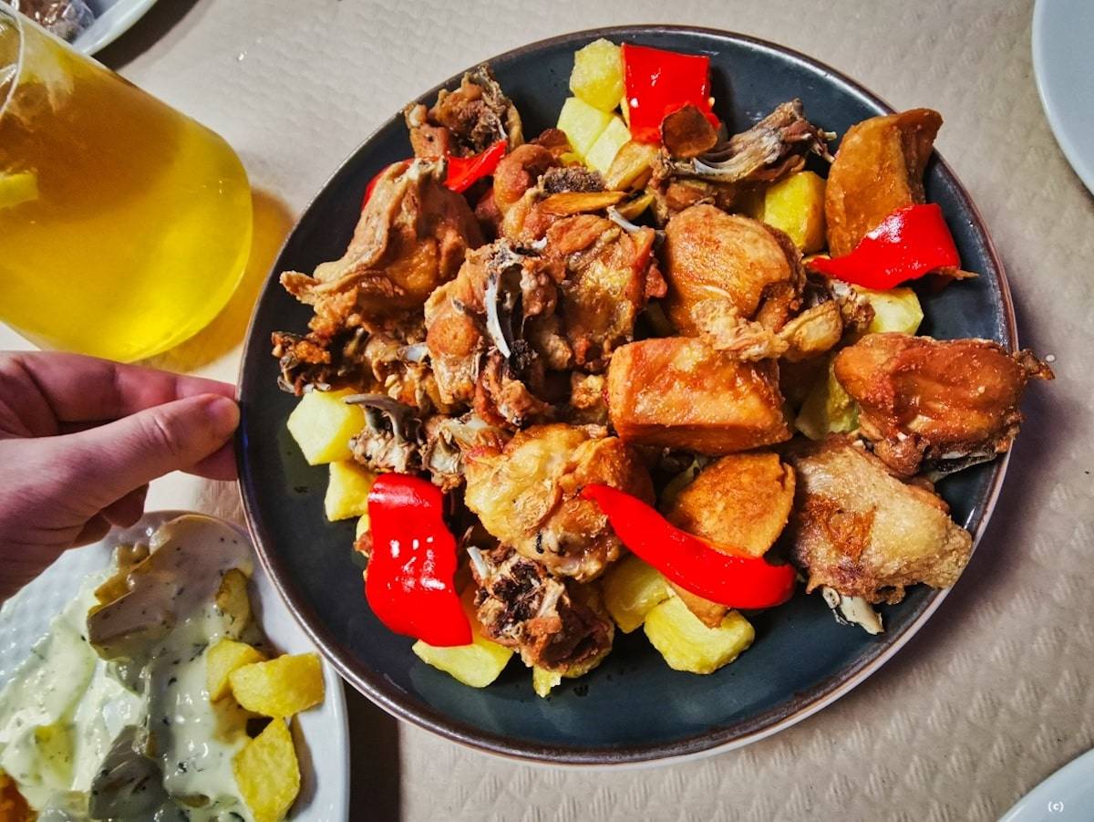 De paté de cabracho (un pez cuya fealdad es directamente proporcional a la delicia gastronómica que ofrece) a chipirones, (“afogaos” o a la plancha sobre todo), de pollo al ajillo a chorizos a la sidra o criollos, encontraréis platos para que toda la mesa pique un poco de todo.