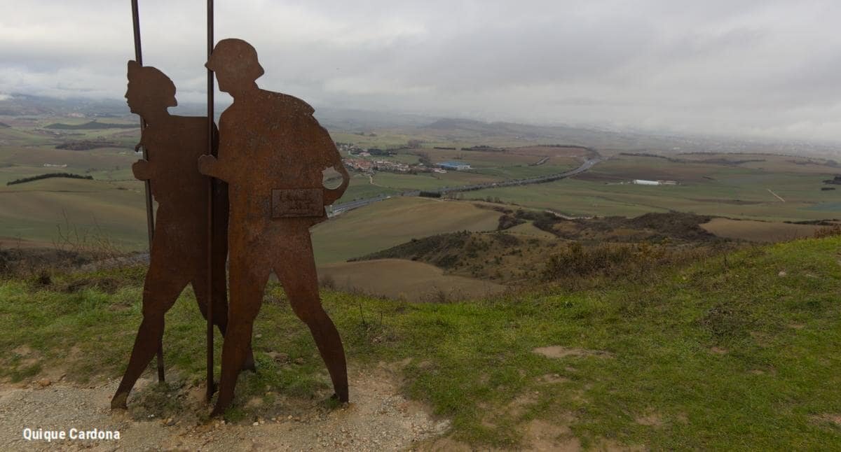 Se puede llegar en coche hasta lo alto de la cima y el trayecto no os llevará más de 15 minutos. Sobre la colina veréis un monumento dedicado a los peregrinos con diferentes siluetas. La obra fue llevada a cabo por Vicente Galbete en forma de chapa y puede leerse la siguiente leyenda: Donde se cruza el camino del viento con el de las estrellas.