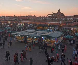La Plaza Jemaa el Fna es el punto central y el lugar imprescindible que ver en Marrakech. Si la ciudad en sí misma ya es una aglomeración de culturas y razas, esta plaza engloba una fascinante congregación humana donde en cada minuto ocurre alguna cosa.