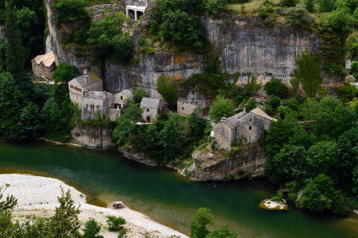 Seguimos la carretera norte que une Florac con Sainte Enimie, un precioso pueblo medieval desde donde parten senderos para realizar trekkings por la zona. Andábamos justos de tiempo y seguimos por la carretera pasando por el castillo de Château de la Caze, hoy en día convertido en un hotel de lujo cuya presencia quita la respiración a más de uno.