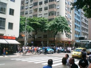 Los taxis son una experiencia. Nosotros tomamos uno para ir desde el aeropuerto hasta Copacabana que nos llevó por 70 Reais, tarifa cara pero que aceptamos por ser domingo por la noche y porque llegábamos tarde a nuestra cita con la chica que debía entregarnos las llaves del apartamento. Desde el aeropuerto salen furgonetas shuttle y buses de línea que te llevarán por entre 6 y 12 Reais a las zonas céntricas y las playas. Volvimos a tomar un taxi el día que dejamos la ciudad para que nos llevase con todos los bultos a la Rodoviaria -estación de bus en Brasil- de Río. Este último taxi estaba conducido por el padre del auténtico Felipe Massa. El abuelo sorteaba personas, coches, puestos de comida y todo lo que se terciaba con un giro brusco de volante a una velocidad endiablada mientras reía como un poseso por entre una boca falta de dientes y nos comentaba, a la vez que esquivaba, los lugares por los que iba pasando. De vez en cuando utilizaba el claxon para pitar a alguien a quien casi atropella o saludar algun otro taxista conocido. El tío era un CRACK, así, con mayúsculas.
