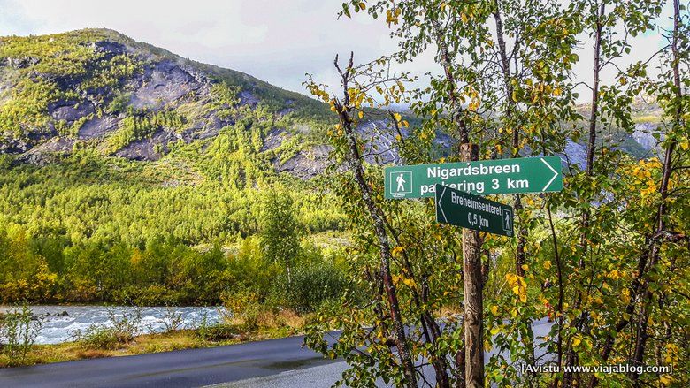 Desde ahí, se puede optar por caminar los aproximadamente 3 kilómetros que nos separan del parking secundario (aparece como Nigardsbreen parkeringsplassen en el Google Maps más abajo) o hacerlo en vehículo.