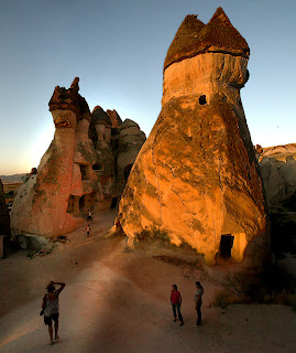 Luego nos fuimos a visitar las chimeneas de las hadas. Es una de las imágenes más características de Capadocia. Unas extrañas formaciones que transportan a uno a historias de hadas y duendes. La roca está formada por dos partes distintas de mineral debido a la erosión y por eso forman ese curioso efecto. Uno se anima en el lugar y empieza a hacer curiosas escaladas por la roca. Parecen de fácil subir pero id con cuidado porque debido a la erosión no es tan fácil agarrarse al terreno.
