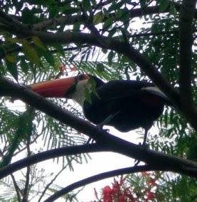 Fue un paseo impresionante en el que a veces avanzamos a golpe de remo pudiendo apreciar, con gran solemnidad en nuestro silencio, los diferentes sonidos de la gran cantidad de vida que se movía ante nuestros ojos pero, en la mayoría de los casos, fuera del alcance de los mismos. La anécdota ocurrió cuando un caimán, que se había sumergido unos segundos antes, emergió al lado de la barca y golpeó con su morro en mi lado. Aunque me sobresalté, le pude sacar una buena foto al campeón.